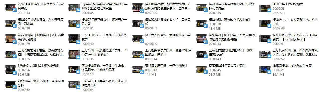 【1】吸引力原理 【2】外形改造 【3】展示面建设 社交软件建设 【4】深度吸引 【5】女性心理分析 21节课 【6】社交吸引力训练营 【7】最强约会攻略 【8】窗口...